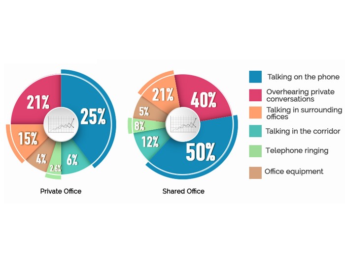 Các nghiên cứu gần đây cho thấy rằng phần lớn nguyên nhân gây sụt giảm năng suất lao động là do sự gián đoạn giao tiếp. Do đó, để cải thiện năng suất lao động chúng ta cần tập trung loại bỏ yếu tố này khỏi nơi làm việc. Nghiên cứu cũng cho thấy văn phòng mở không được lắp đặt các loại vật liệu cách âm tiêu âm có thể giảm đến 15 % năng suất lao động, trung bình mỗi ngày một nhân viên bị mất 21,5 phút mất tập trung vì bị sao nhãng bởi tiếng ồn xung quanh.
