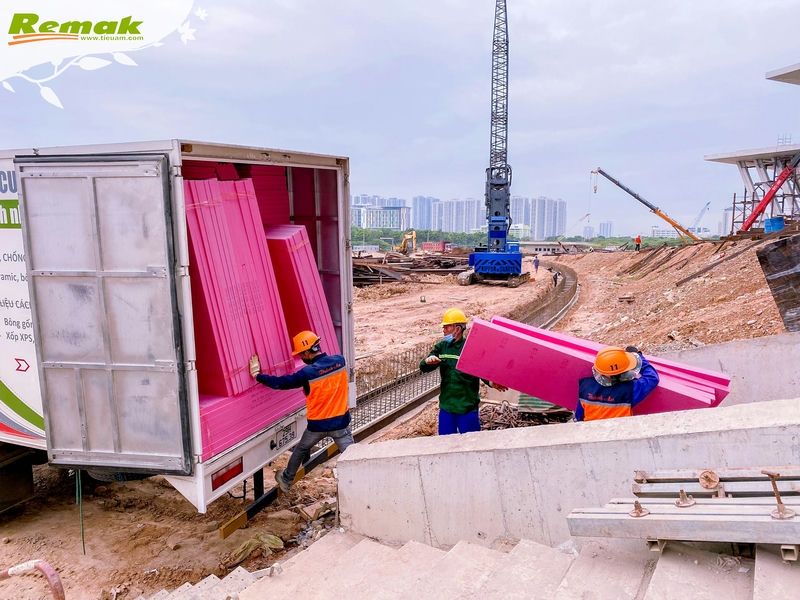 Số lượng lớn 2 loại xốp Remak® XPS được nhà thầu thi công cách nhiệt mái bê-tông và tôn nền, cách nhiệt kho lưu trữ Bảo tàng Lịch sử Quân sự Việt Nam – dự án cấp đặc biệt của Nhà nước.