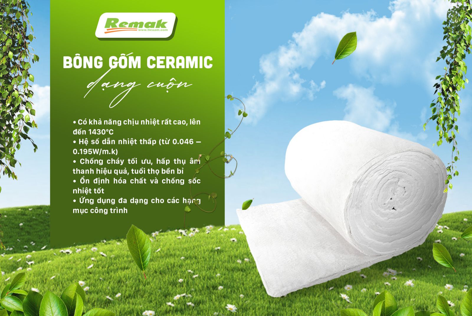 Được làm từ các sợi gốm theo dạng cuộn, bông gốm (ceramic fiber) Remak sở hữu nhiều đặc tính ưu việt: