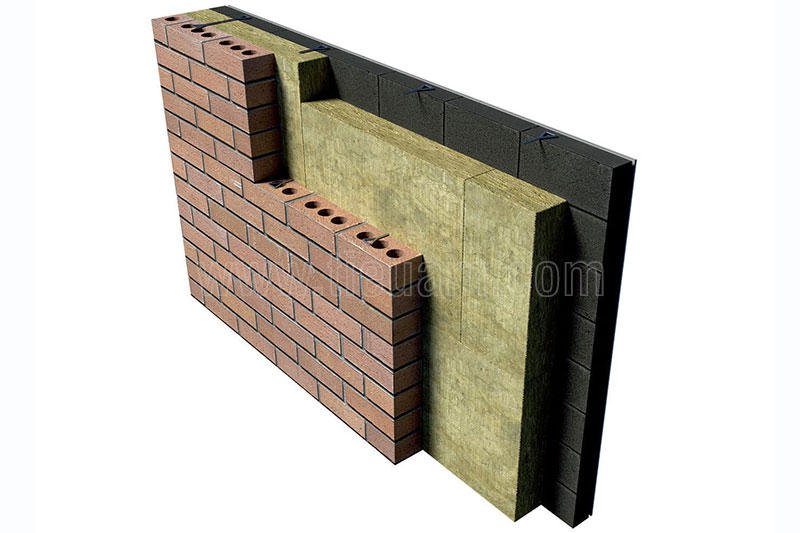 Bông khoáng thường được đặt giữa 2 lớp tường gạch để bảo ôn, cách nhiệt và cách âm