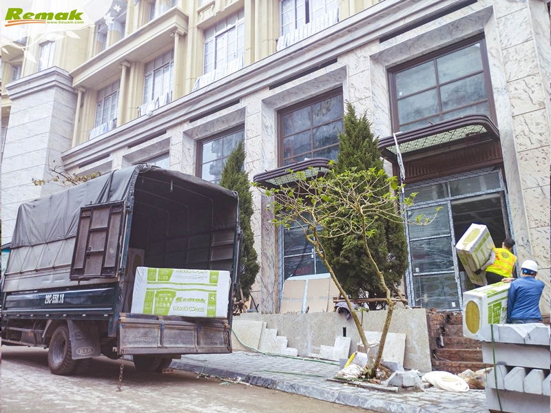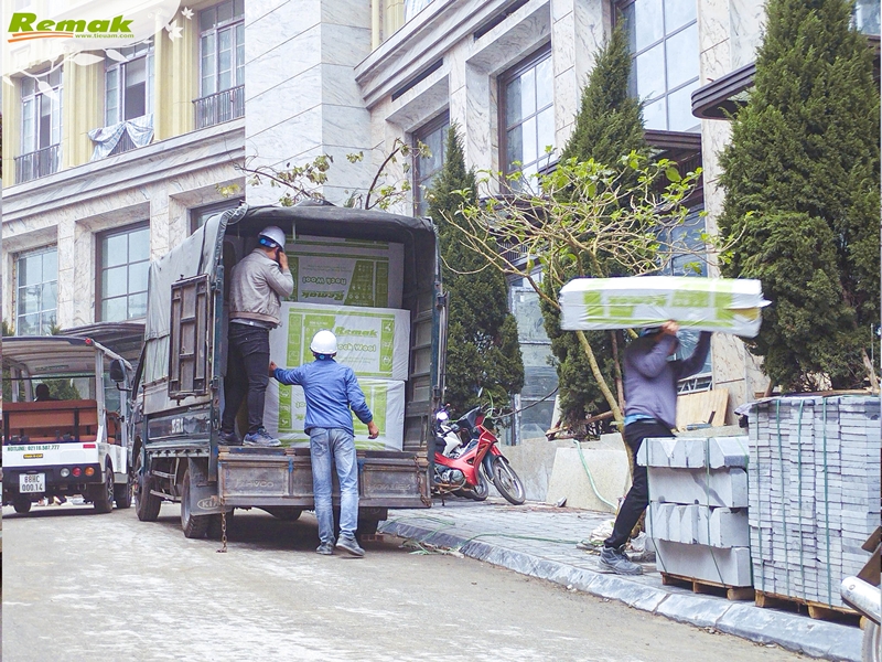 Đơn hàng số lượng lớn bông khoáng tấm Remak® Rock wool LP vừa được Remak vận chuyển đến công trình khách sạn Grand Hotel Victory để nhà thầu thi công hạng mục vách cách âm.