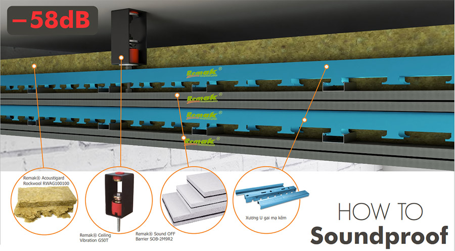Hiện nay, Remak là đơn vị đầu tiên tại Việt Nam phân phối sản phẩm cách âm chuyên nghiệp của hãng Acoustic Sonic (Mỹ), với hệ đệm lò xo giảm chấn chống rung chuyên dụng để ngăn chặn giao động rung của âm thanh truyền vào kết cấu. Hệ phụ kiện lò xo giảm chấn này là một trong những giải pháp thông minh và hiệu quả hiện đang được ứng dụng rất phổ biến tại hầu hết các Disco bar trên toàn thế giới.