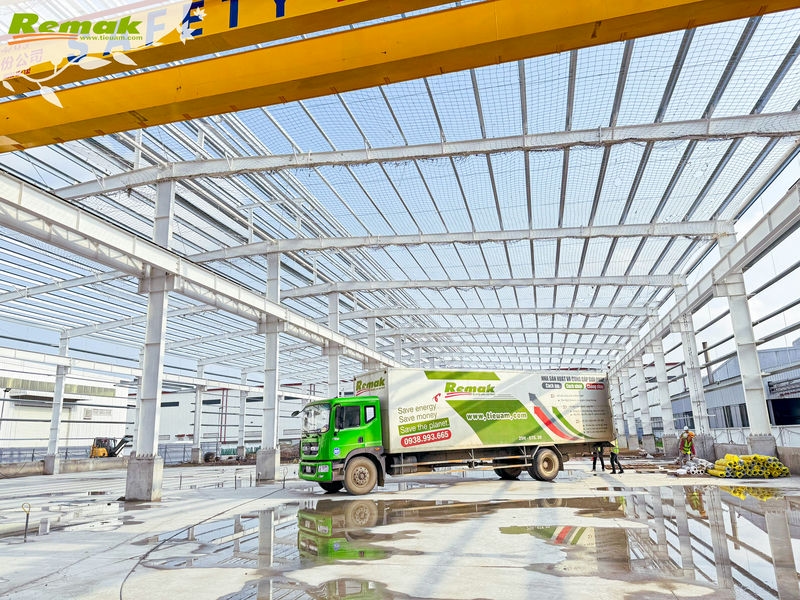 Để đảm bảo các yêu cầu kỹ thuật cũng như sức khỏe con người, góp phần gia tăng năng suất lao động cùng cảm giác thoải mái dễ chịu, phần mái kim loại của nhà máy được chú trọng cách nhiệt bằng giải pháp đồng bộ từ nhóm vật liệu tạo do Remak sản xuất – cung ứng: