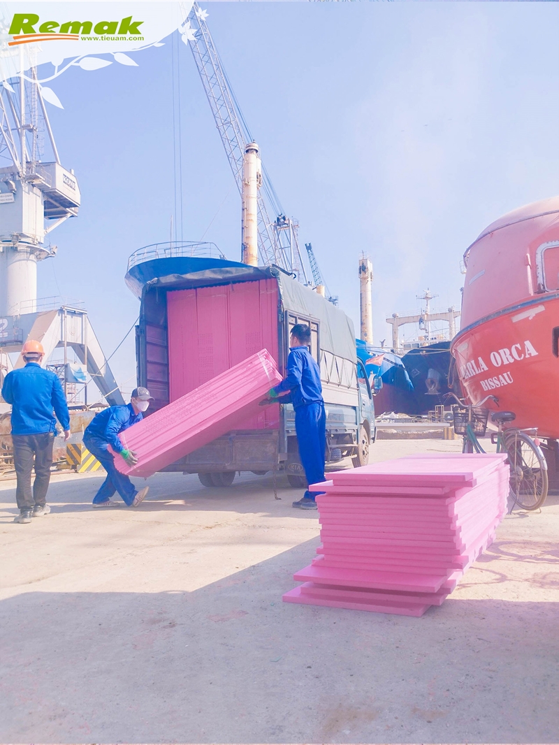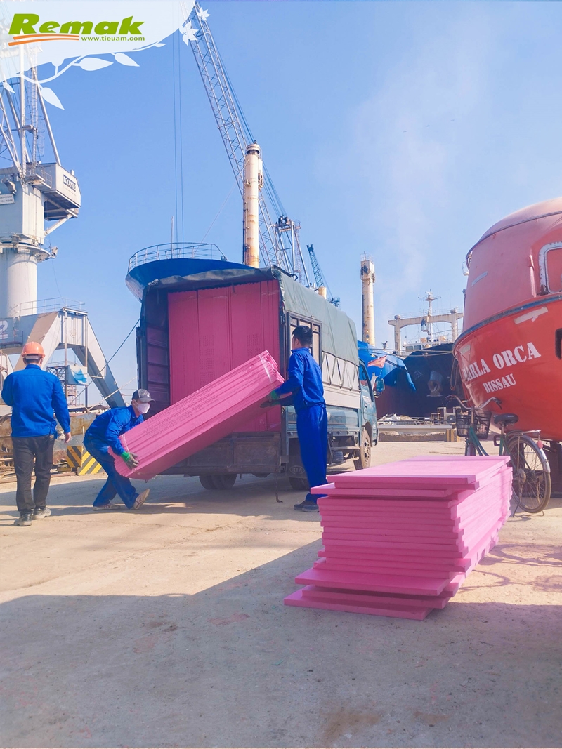 Công ty Đóng tàu Phà Rừng là doanh nghiệp chuyên sửa chữa, đóng tàu – đơn vị thành viên của Tổng Công ty Công nghiệp Tàu thủy (SBIC). Khách hàng này ứng dụng số lượng lớn tấm xốp ép đùn siêu nhẹ màu hồng Remak® XPS Ultralight 150 để thi công cách nhiệt mái tàu.