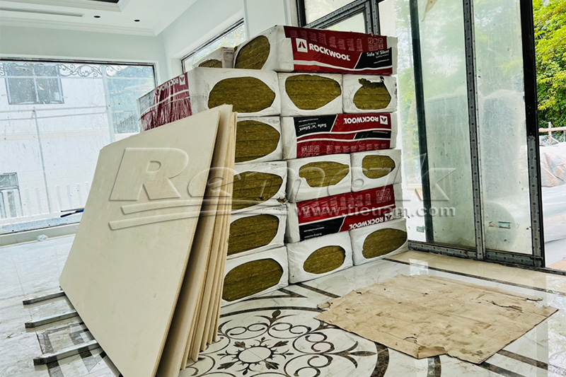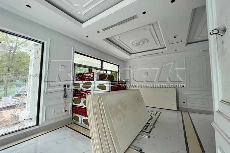 Vì vậy, khách đã đặt từ Remak đơn hàng đồng bộ gồm bông khoáng Rockwool Thái Lan, đinh ghim bông, tấm Remak® MgO, cao su non, túi khí, ống gió mềm D100 ko bảo ôn. Theo đó, vách tiêu âm sẽ chống rung, tiêu âm, tán âm, cách âm, cách nhiệt hiệu quả; giải quyết được bài toán về việc chống ẩm, thông gió – làm thoáng khí ở tầng hầm và phục vụ nhu cầu thưởng thức âm nhạc – thư giãn một cách sáng tạo, hiệu quả.