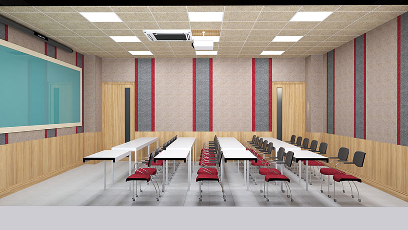 Tấm tiêu âm Sonic kết hợp cùng gỗ tiêu âm soi rãnh cung cấp một giải pháp hiệu quả để kiểm soát âm thanh trong không gian phòng học giảng đường. Những tấm tiêu âm này giúp làm giảm tiếng ồn, giảm thiểu tiếng vang và tăng cường độ rõ của âm thanh.