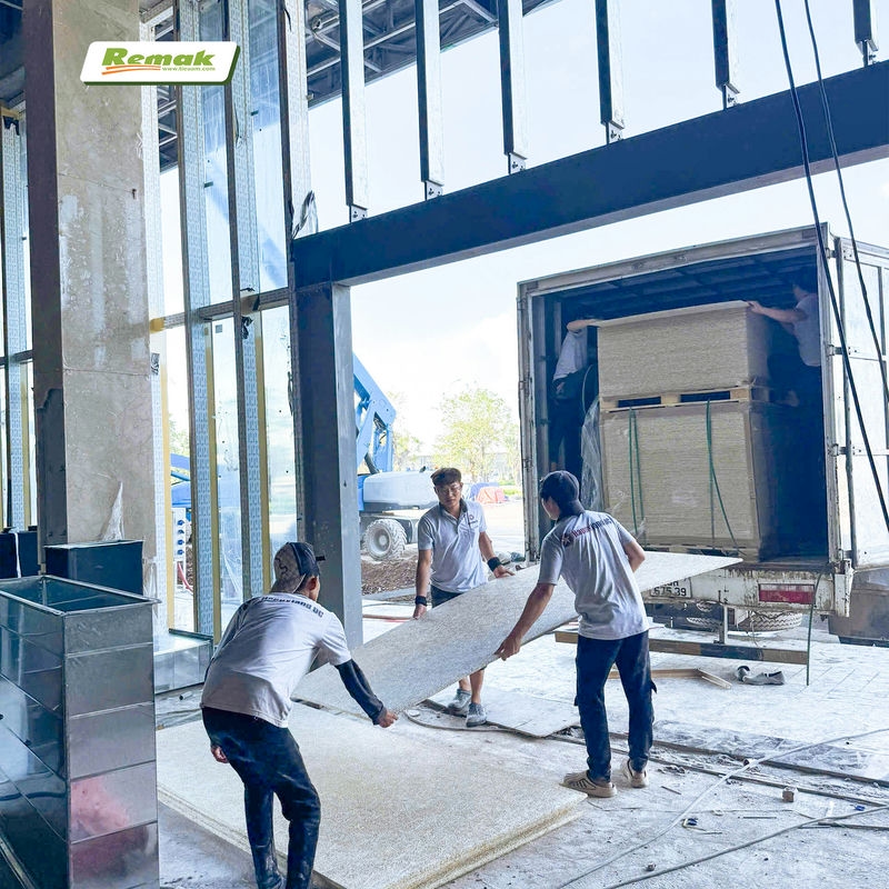 Từng tấm len gỗ tiêu âm được sản xuất, kiểm định nghiêm ngặt tại nhà máy Remak và vận chuyển theo đúng tiến độ công trình. Đội ngũ kỹ thuật của Remak luôn sẵn sàng hỗ trợ tại công trường để đảm bảo chất lượng thi công chính xác – đồng bộ – đúng yêu cầu kỹ thuật.