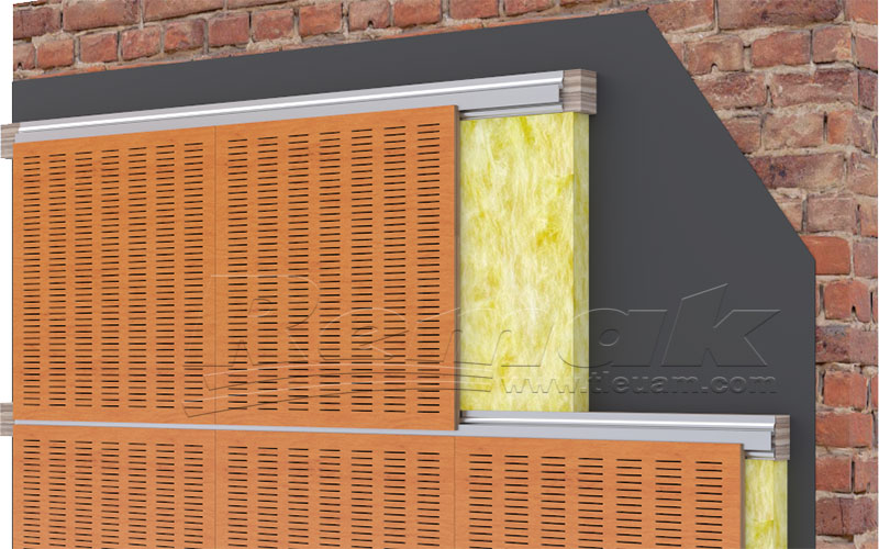 Vách tiêu âm sử dụng vật liệu Cao su non, bông thủy tinh và gỗ tiêu âm rãnh dọc