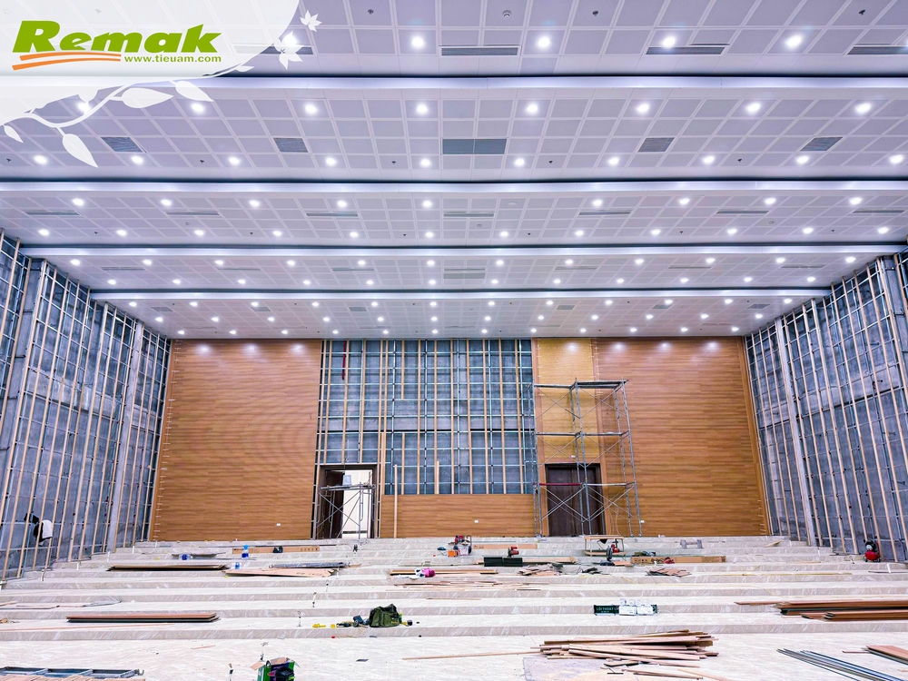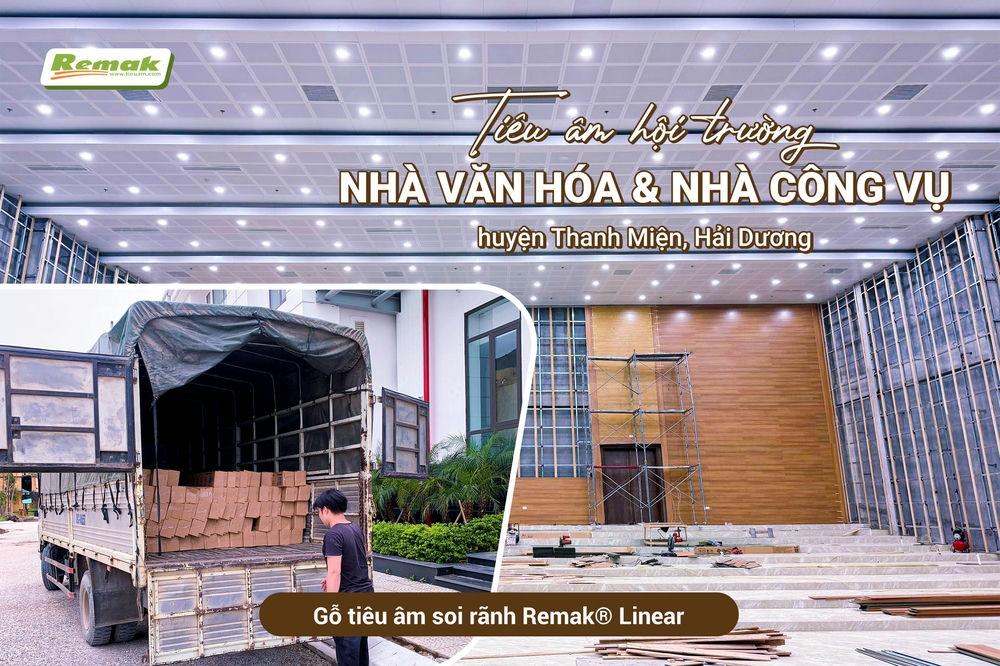 Một số hình ảnh Remak bàn giao đơn hàng gỗ tiêu âm soi rãnh Remak® Linear tại công trình Hội trường Nhà Văn hóa & Nhà Công vụ huyện Thanh Miện, Hải Dương:
