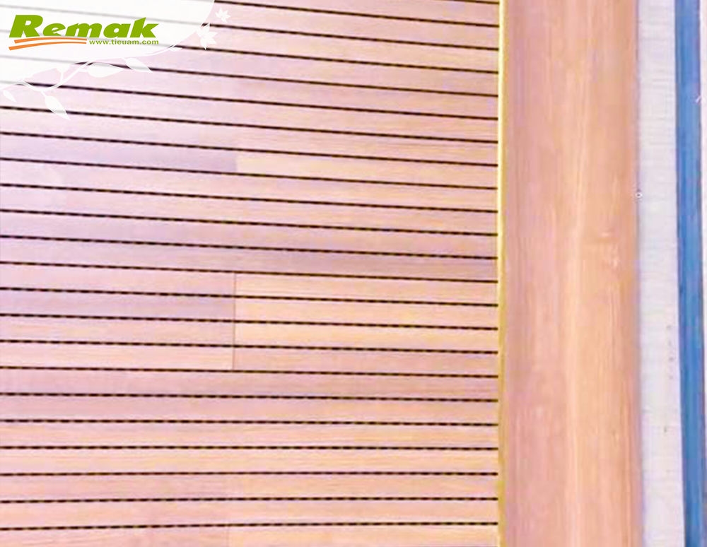Gỗ tiêu âm soi rãnh kết hợp những rãnh gỗ song song trên bề mặt ván gỗ với lỗ đục phía sau tạo nên vật liệu bề ngoài nổi bật và hiệu suất âm học tuyệt vời. Với nguồn gỗ nguyên liệu nhập khẩu từ Malaysia và sản xuất trên dây chuyền chuyển giao công nghệ tiên tiến của CHLB Đức, Remak® Linear dễ thi công, màu sắc đa dạng, đáp ứng tốt yêu cầu khắt khe từ các công trình. Ván gỗ tiêu âm soi rãnh Remak® Linear thường được sử dụng hiệu quả cho hạng mục thẩm âm vách. Độ thẩm mỹ bắt mắt, trang nhã cùng khả năng giảm tiếng ồn, âm dội, giúp hấp thụ âm thanh có tần số trung bình – cao của chúng thỏa mãn mọi ý tưởng sáng tạo của giới thiết kế nội thất.