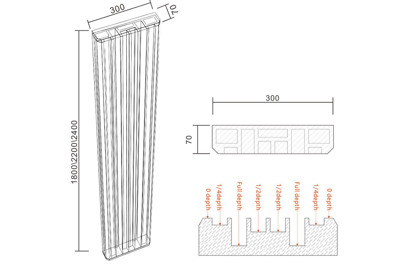 Kích thước: 1800/2000/2200/2400 * 300 * 70mm