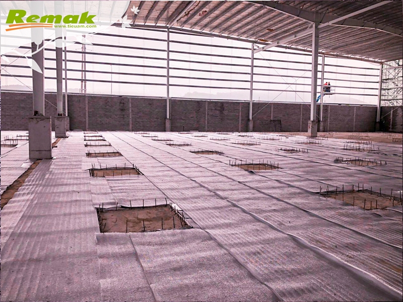 Một số hình ảnh nhà thầu thi công trải nền bằng Remak® PE OPP 1 mặt bạc tại công trình Sembcorp Logistics Park Quảng Ngãi và Trung tâm Kho vận SIS Nghệ An: