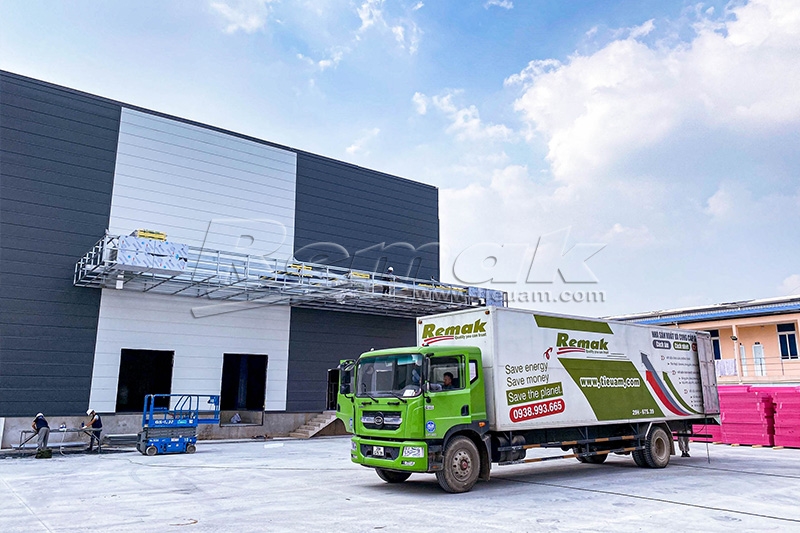Trong thời gian 23/11 đến 8/12, đơn hàng số lượng lớn Remak® XPS Frozen 600 được hoàn tất bàn giao đến nhà máy thực phẩm O'Food Miwon (Hải Dương). Nhà thầu sử dụng tấm xốp ép đùn siêu nhẹ màu hồng do Cty CP Xây dựng & Nội thất Remak sản xuất để thi công lót sàn kho lạnh.