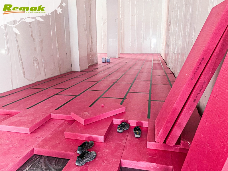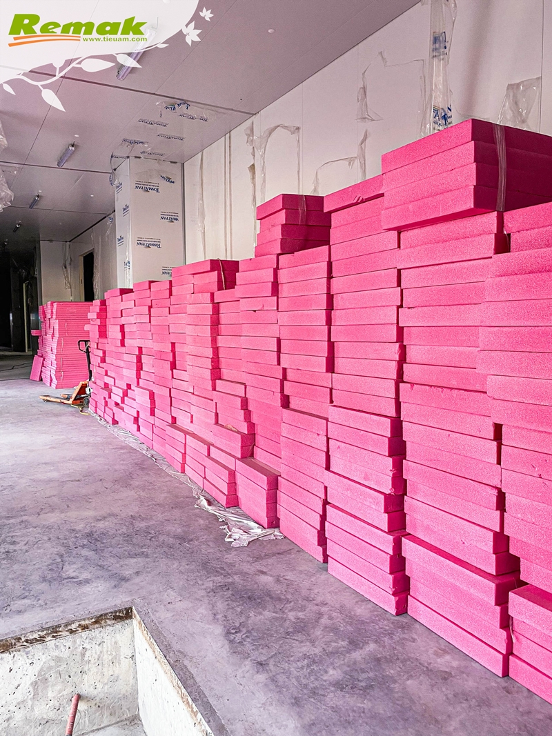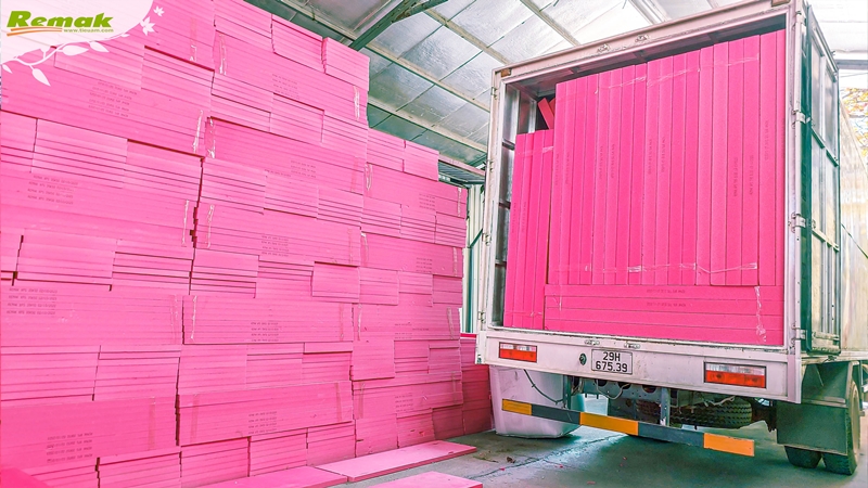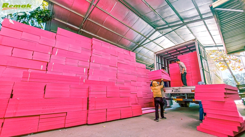 Một số hình ảnh tập kết và thi công tấm xốp siêu nhẹ màu hồng Remak® XPS tại công trình: