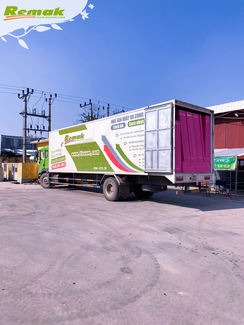 Vận chuyển Remak® XPS từ nhà máy sản xuất lên xe tải tại kho bãi Lại Yên để bàn giao đến công trình kho lạnh Daesang Đức Việt