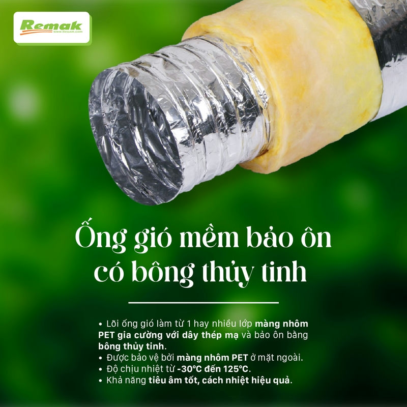 Ống gió mềm bảo ôn bông thuỷ tinh của Remak chất lượng vượt trội nhờ được làm từ nguyên liệu đạt chuẩn