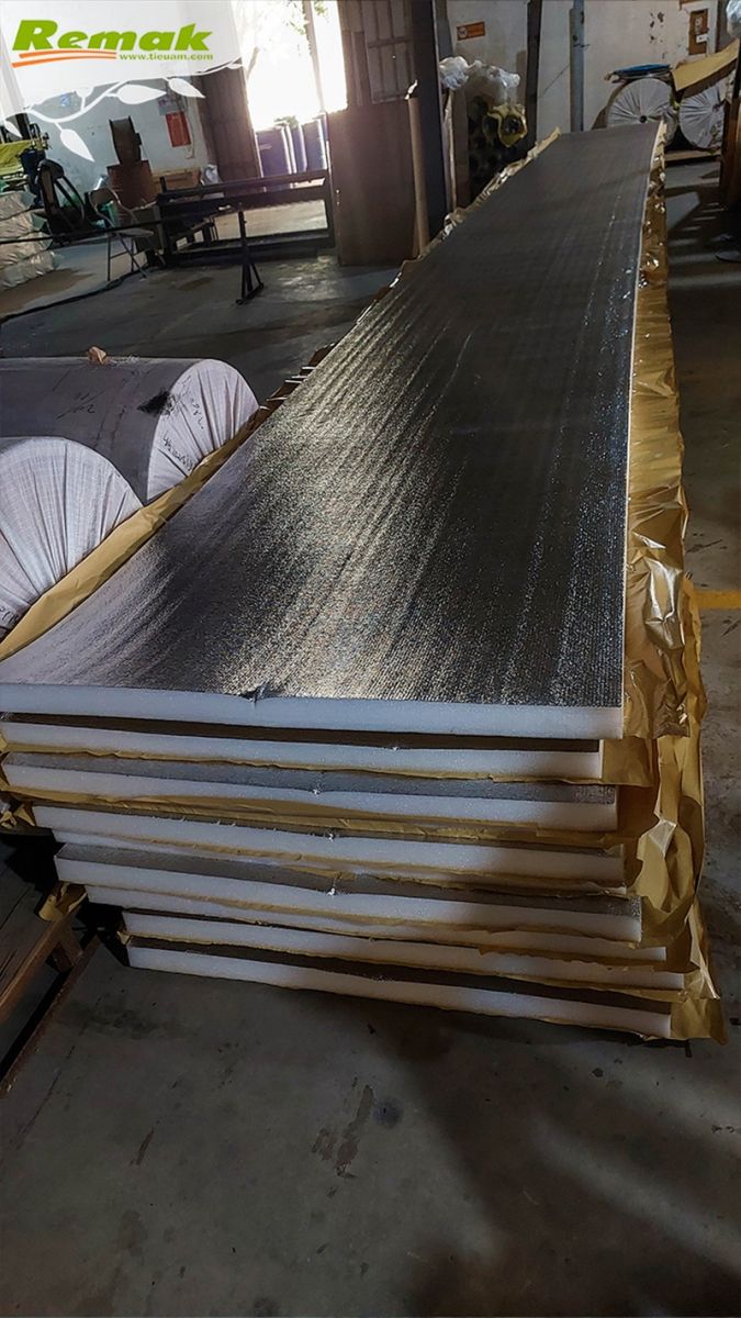 Remak® PE OPP 1 mặt bạc – 1 mặt keo dính sẵn: chỉ cần bóc phần giấy ở bề mặt lớp keo là chúng ta có thể nhanh chóng dán miếng xốp vào mái tôn hoặc các loại vật liệu khác. Sản phẩm hỗ trợ người dùng thao tác dễ dàng hơn, giúp ích cho quá trình thi công diễn ra nhanh chóng, thuận tiện, tiết kiệm thời gian cùng chi phí xây dựng công trình
