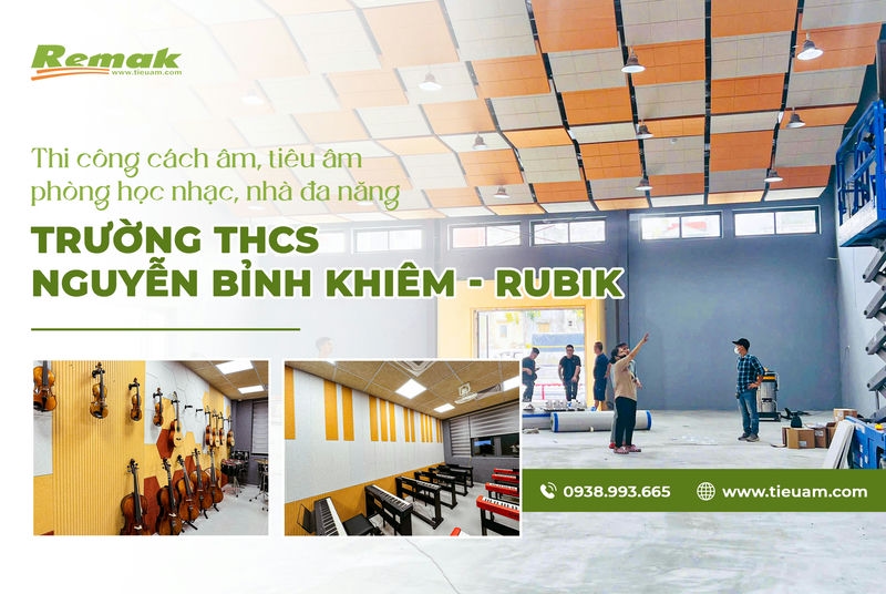 Với quy mô gồm 4 tầng nổi, trường THCS Nguyễn Bỉnh Khiêm – Rubik được đầu tư cơ sở vật chất chuẩn Quốc tế, tạo nên môi trường học tập lý tưởng cho học sinh. Không chỉ được chủ đầu tư là trường Nguyễn Bỉnh Khiêm lựa chọn là đơn vị chịu trách nhiệm tư vấn và thiết kế, Remak còn trực tiếp cung cấp vật tư và thi công các hạng mục cách âm và tiêu âm cho Phòng học nhạc và Nhà đa năng của trường.
