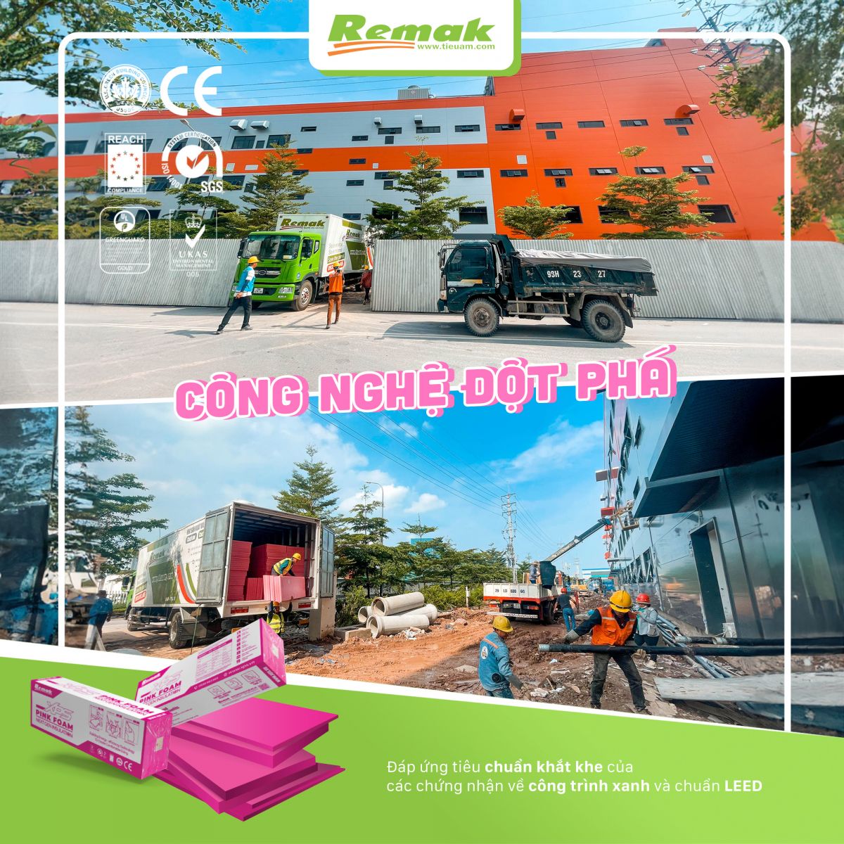 Với công nghệ đột phá, tấm xốp cách nhiệt – cách âm Remak® XPS đáp ứng tiêu chuẩn khắt khe của các chứng nhận về Công trình Xanh và chuẩn LEED. Giúp bảo vệ môi trường, tạo ra không gian sinh sống – làm việc tốt hơn cho con người. Đáp ứng linh hoạt, đa dạng các hạng mục:
