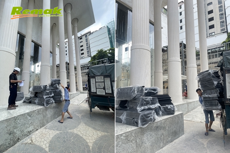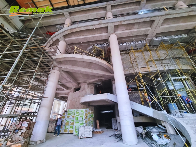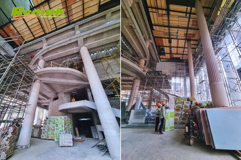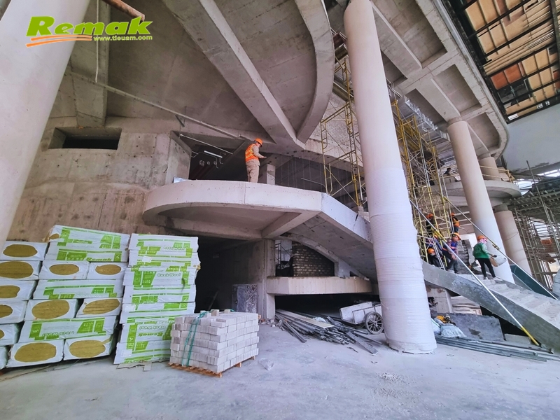 Remak vinh dự trở thành nhà cung cấp số lượng lớn bông khoáng, bông thủy tinh, mút gai kim tự tháp, tấm sonic chống cháy và tấm sonic tiêu âm – trang trí... để nhà thầu thi công hoàn thiện Nhà hát Hồ Gươm. Với các loại sản phẩm, vật liệu xây dựng chất lượng hàng đầu, công trình có tính năng cách nhiệt, chống cháy, tiêu âm, cách âm tối ưu; đảm bảo được vẻ đẹp thẩm mỹ, trang trí bắt mắt cùng hiệu suất và công năng vượt trội của từng hạng mục thiết kế. Theo chia sẻ từ các chuyên gia tư vấn – thiết kế âm học, Nhà hát Hồ Gươm là nhà hát đầu tiên tại Việt Nam sử dụng các loại máy móc thiết bị rạp hát đạt tiêu chuẩn quốc tế và chất lượng cao cho cả âm học tự nhiên và khuếch đại; đáp ứng yêu cầu biểu diễn của nhiều loại hình nghệ thuật như opera, nhạc giao hưởng, múa ballet, nhạc kịch, nhạc dân tộc...