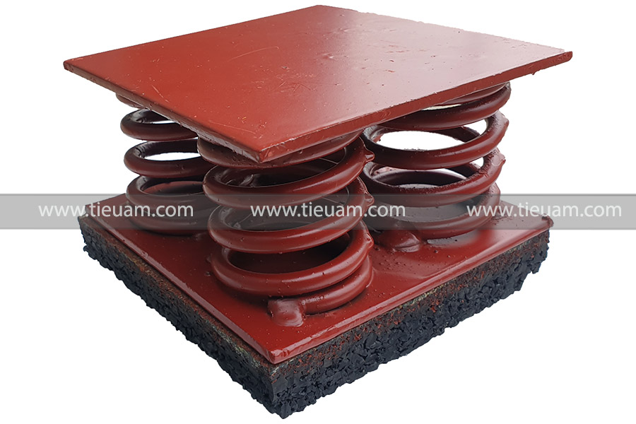 - Lớp đệm lò xo được chế tạo từ hợp kim chất lượng cao có khả năng phục hồi sau biến dạng tốt, khả năng chịu lực tùy theo thiết kế của khách hàng. Thông thường 1 tấm đệm lò xo giảm chấn cách âm chịu được lực nén từ 50kg - 200kg/cái.