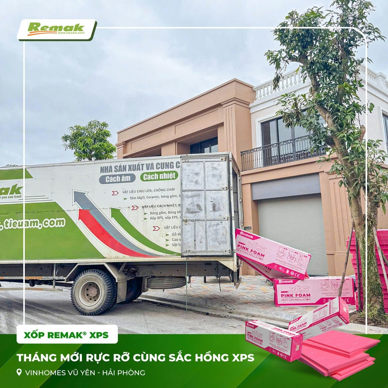 Tấm Xốp Cách Âm Cách Nhiệt, Tôn Nền Remak® Xps – Sắc Hồng Rực Rỡ Cho Công Trình Hiện Đại Tại KĐT Vinhomes Vũ Yên (Hải Phòng)