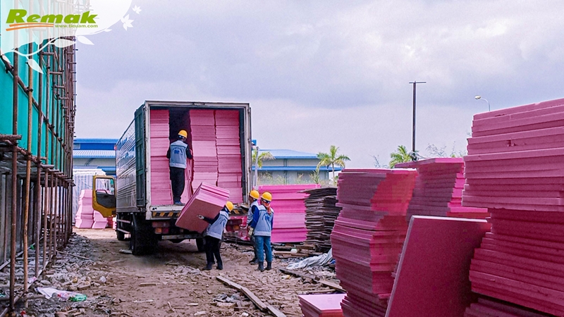 Một số hình ảnh nhà thầu thi công tấm xốp Remak® XPS tại công công trình khu tổ hợp nhà máy ở KCN Đồ Sơn, Hải Phòng: