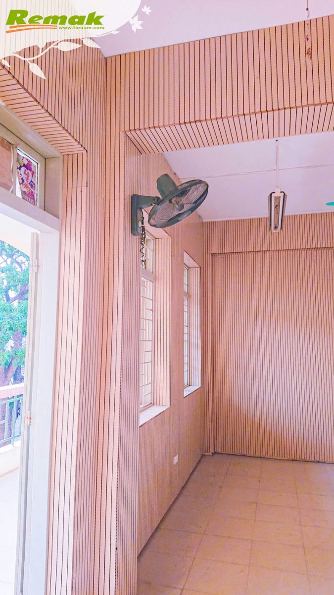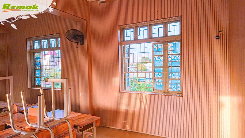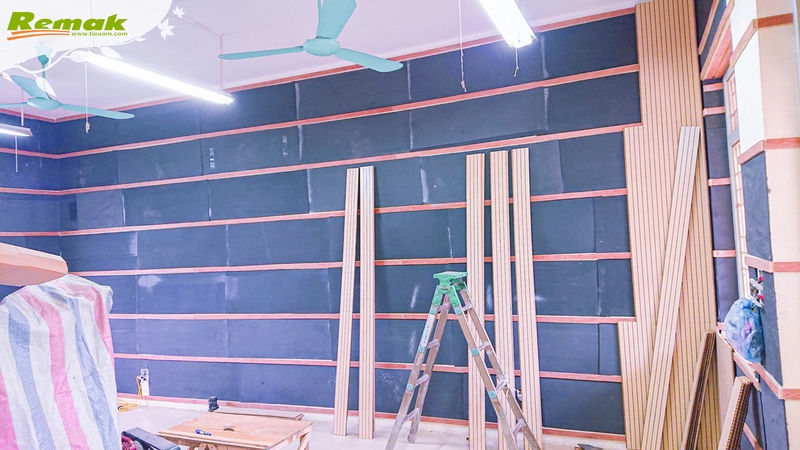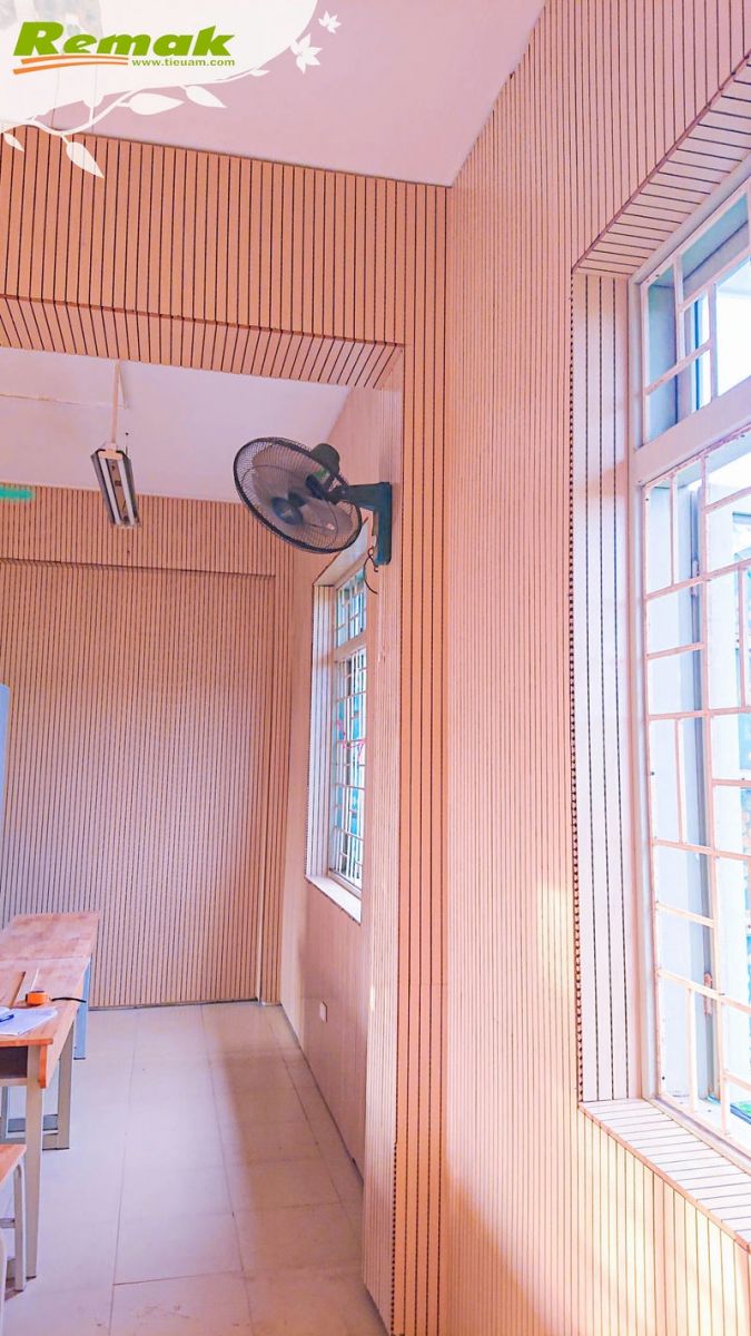 Ở công trình Phòng học Âm nhạc của trường THPT Ngô Thì Nhậm, gỗ tiêu âm soi rãnh Remak® Linear cùng cao su non Remak® Sound OFF Damping Rubber kết hợp thành giải pháp tiêu âm đơn giản nhưng vẫn hiệu quả và giúp tiết kiệm ngân sách. Vẻ đẹp trang nhã, hiện đại cùng khả năng giảm tiếng ồn, âm dội, giúp hấp thụ âm thanh có tần số trung bình – cao của nhóm vật liệu do Remak thiết kế và sản xuất có thể đáp ứng mọi yêu cầu khắt khe về âm thanh cũng như ý tưởng sáng tạo.