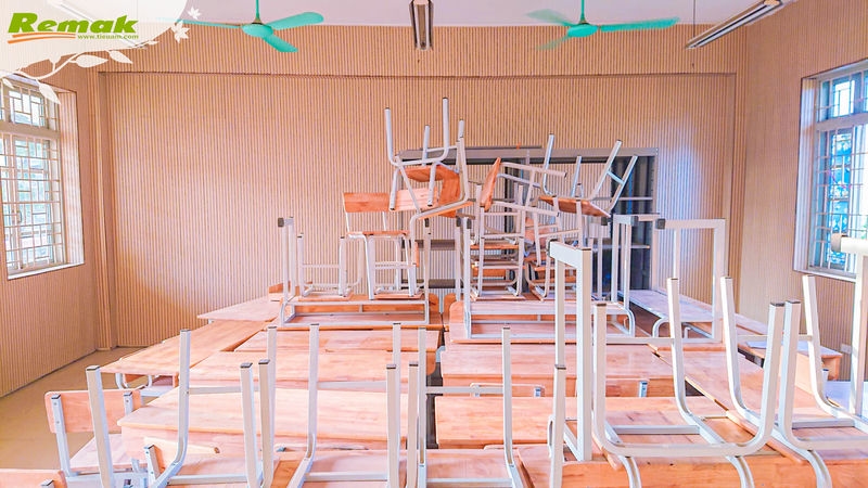 Một số hình ảnh Remak bàn giao đơn hàng và nhà thầu thi công vách gỗ tiêu âm soi rãnh Remak® Linear tại Trường THPT Ngô Thì Nhậm: