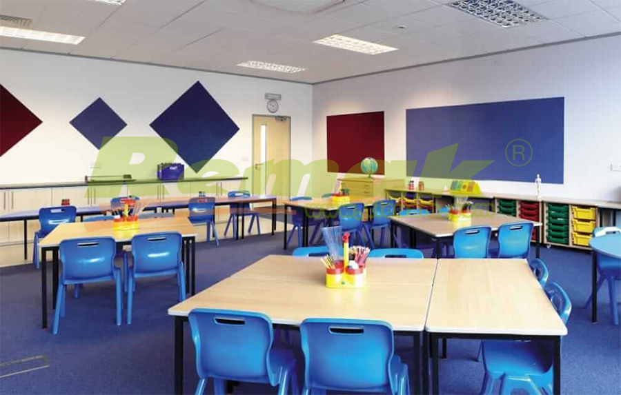 Do thiết kế âm học phòng của công trình trường học khá phức tạp, Remak khuyến cáo quý khách nên tham khảo ý kiến của các chuyên gia tư vấn âm học, các công ty chuyên về tiêu âm, cách âm để đạt được chất lượng âm học cao nhất cho công trình.