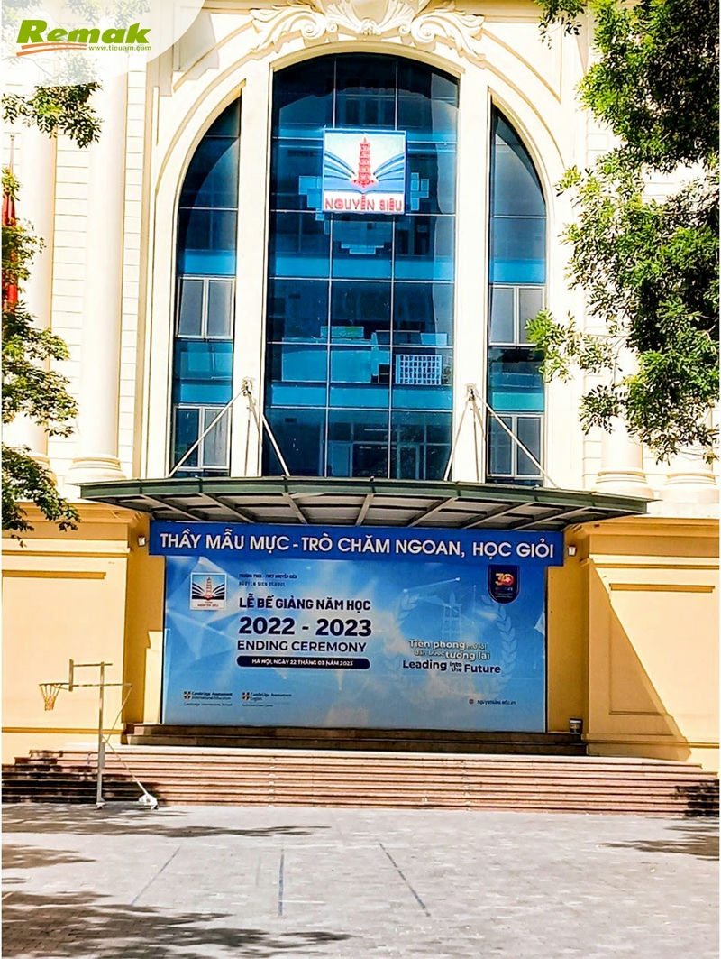 Thực tế, Tiểu học – THCS – THPT Nguyễn Siêu là 1 trong 3 ngôi trường liên cấp tại thành phố tạo dấu ấn khác biệt và ấn tượng với cơ sở vật chất mang phong cách châu Âu vừa tiện nghi vừa bắt mắt. Năm 2018, trường đã ứng dụng vách dán tấm tiêu âm Remak® Acoustic Sonic để khắc phục triệt để tiếng dội nhại, vang vọng, giúp tối ưu hóa hoạt động giảng dạy – học tập của giáo viên và học sinh. Đến năm 2023, giải pháp âm học được nâng cấp vượt trội bằng bông khoáng và gỗ tiêu âm.