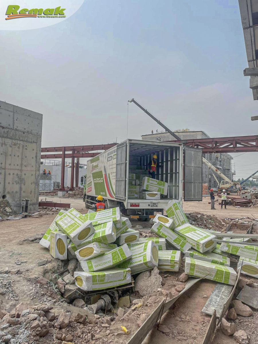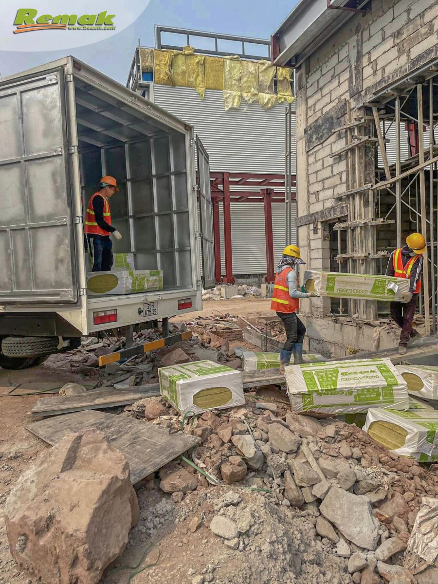 Một số hình ảnh thực tế hiện trường bộ phận kho vận Remak phục vụ vật liệu cách nhiệt cho các công trình:
