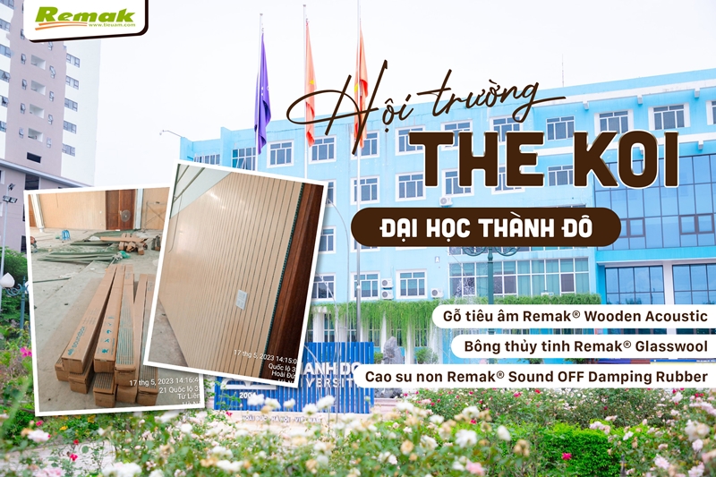 Vừa cách nhiệt – tiêu âm hiệu suất cao, 3 loại vật liệu: gỗ tiêu âm Remak® Wooden Acoustic, Bông thủy tinh Remak® Glasswool và cao su non Remak® Sound OFF Damping Rubber vừa kiến tạo nên chất lượng “xịn sò” cho Hội trường mang tên “The Koi” của trường ĐH Thành Đô (Hoài Đức, Hà Nội). Đây là thương hiệu giáo dục đạt chuẩn 3 sao theo Hệ thống xếp hạng đối sánh "University Performance Metrics" (UPM) do Việt Nam phát triển.