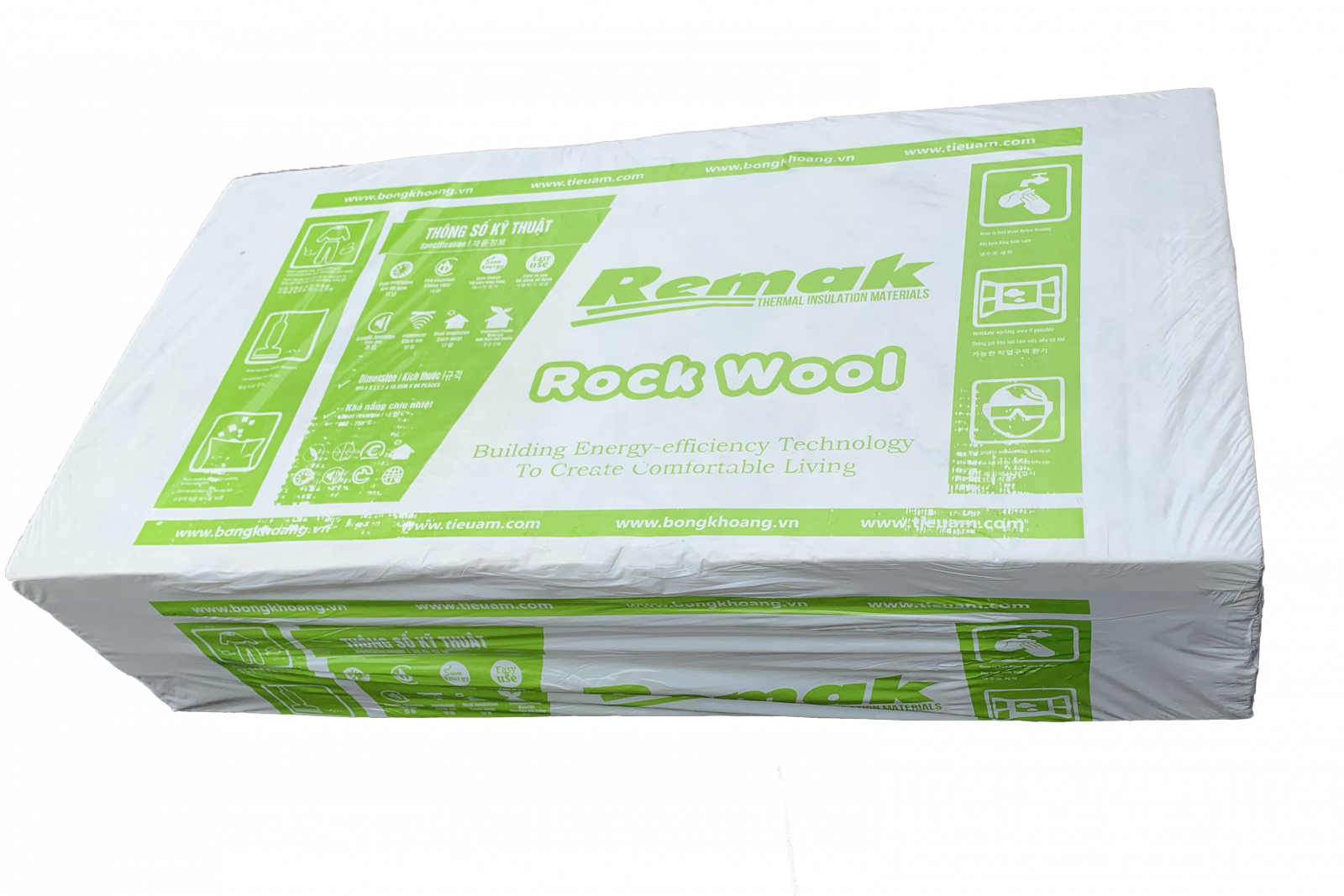 Bông khoáng Rockwool ược sản xuất từ 100% nguồn nguyên liệu đá Bazal sẵn có trong tự nhiên, được xử lý nung chảy ở nhiệt độ cao, sau đó quay ly tâm, và định hình sản phẩm dưới dạng kiện hoặc cuộn, dạng ống. Bông khoáng cách nhiệt chống nóng RockWool có thể chịu được nhiệt độ lên tới 850ºC và có tỉ trọng từ 40kg/m3 – 120kg/m3. Hàng càng có tỷ trọng cao thì khả năng cách nhiệt, cách âm càng tốt.