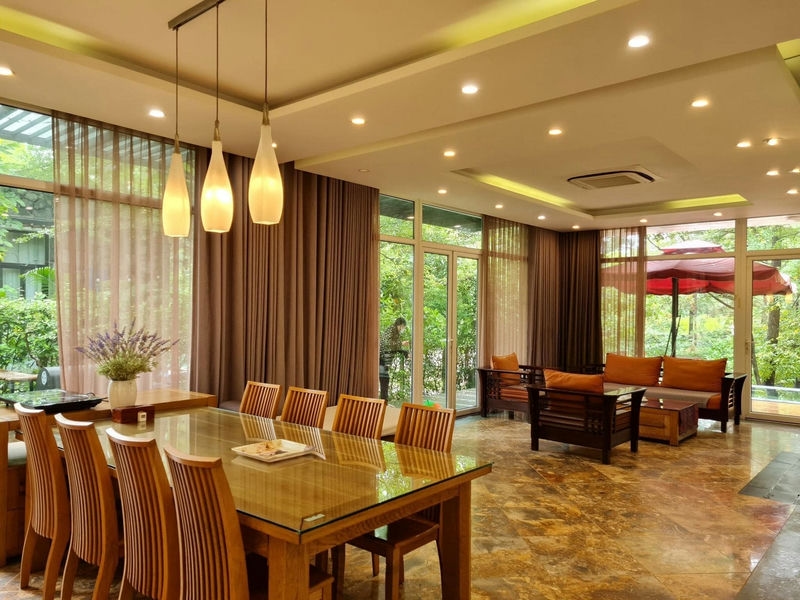 Được nâng tầm giá trị nhờ các vật liệu xây dựng hàng đầu, Villa Bách Thanh nổi bật bởi phong cách hiện đại, thiết kế tối ưu trong không gian xanh mát, hướng mặt về phía hồ nước, tựa lưng vào rừng, bao quanh là vườn hoa và cây xanh. Từ biệt thự, du khách có thể bao quát được mặt nước mênh mông của hồ Forest cùng dãy núi Tam Đảo phía xa một khung cảnh non nước hữu tình trọn vẹn. Sở hữu không gian thoáng rộng và riêng tư, đầy đủ tiện nghi và đa dạng, hệ thống biệt thự Flamingo mang đến phong cách kỳ nghỉ hoàn toàn mới: kết hợp giữa tiêu chuẩn dịch vụ đẳng cấp khu nghỉ dưỡng 5⭐ và cảm giác ấm cúng, gần gũi như tại nhà.