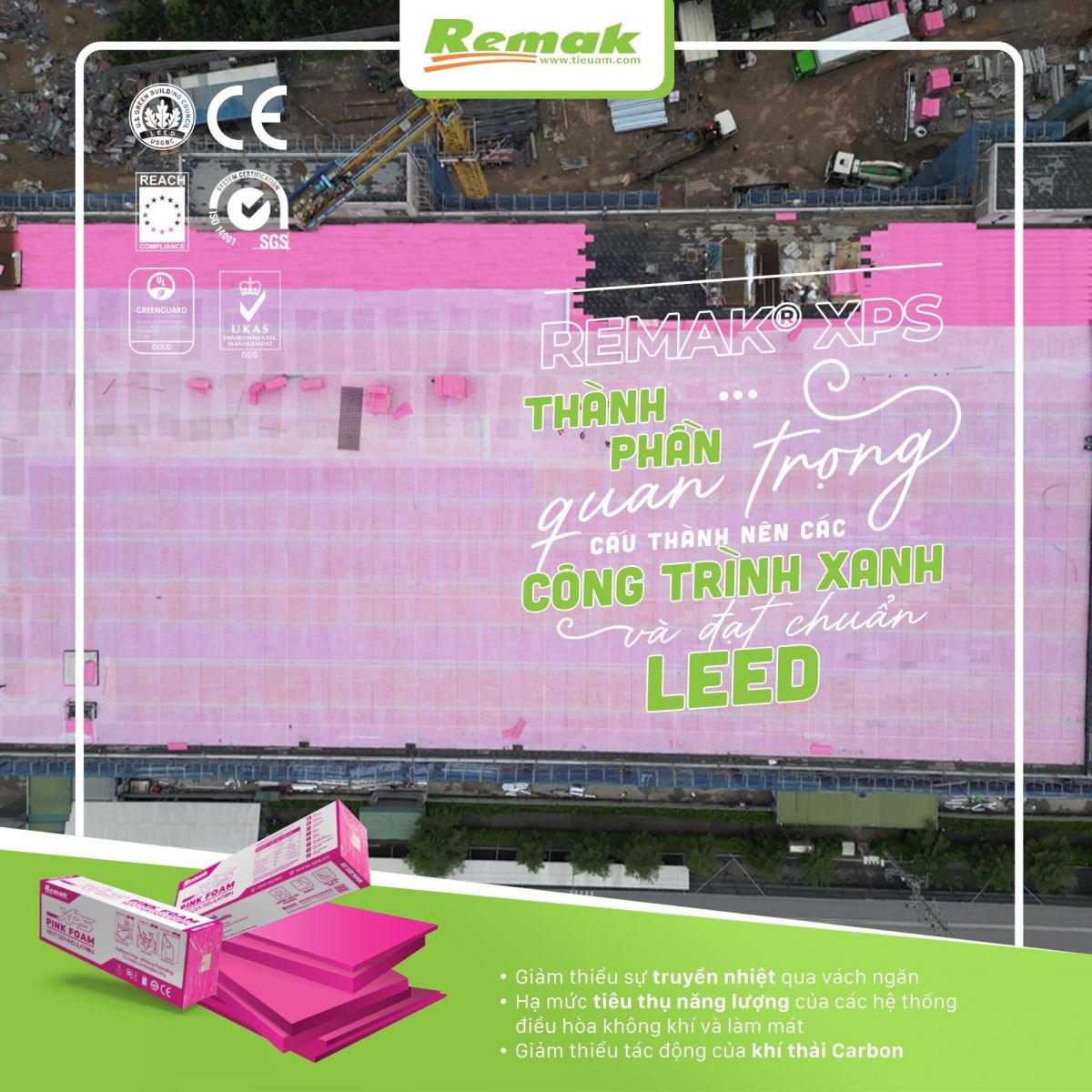 Xốp cách âm cách nhiệt Remak® XPS Foam là lựa chọn số 1 cho các công trình hiện đại bởi hiệu quả vòng đời công trình cao với hàng loạt đặc tính ưu việt: khả năng cách âm cách nhiệt siêu hạng, chống ẩm vượt trội, khả năng chịu lực cao, ....